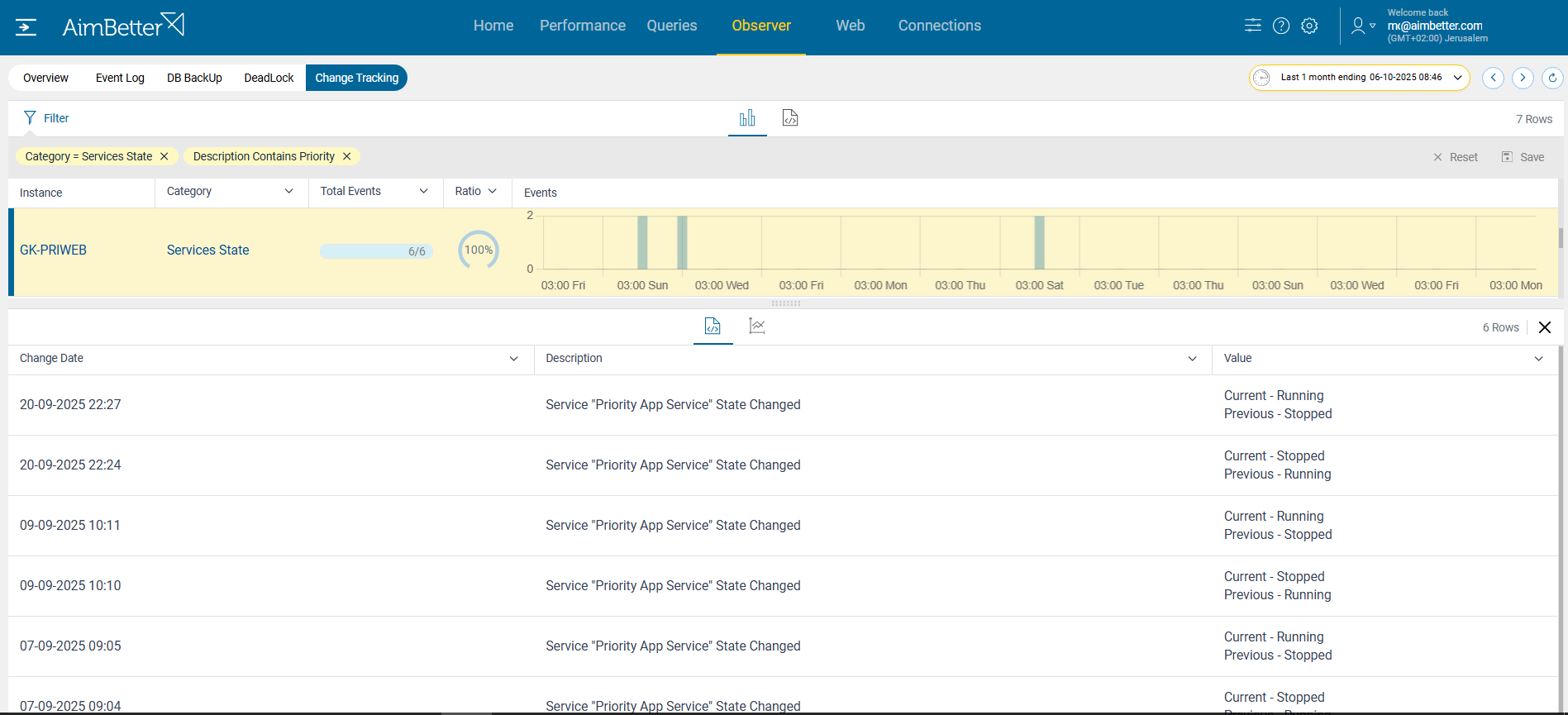 AimBetter offers a unique advantage with its custom event tracking and service availability monitoring for Priority ERP, giving IT teams and business managers a comprehensive view of the system’s operational health.