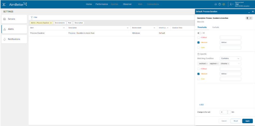 Performance alert configuration conditions can now be defined using exact matches, “starts with,” or